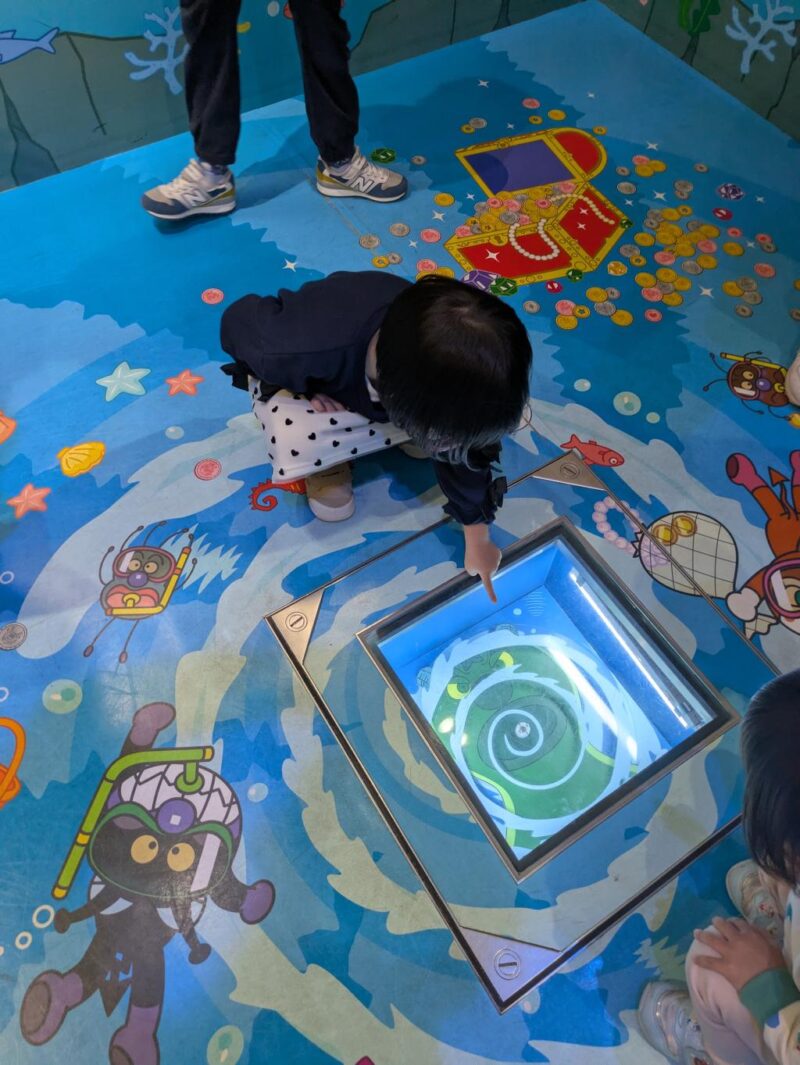 パーク内は子供が触って遊ぶところや身体を動かして遊べる施設もたくさんあるので、ショーがない時間も存分に楽しむことができますし、無料エリアもフードコートにお土産ショップ、本屋に、ゲームコーナーと、有利エリアに入らずとも楽しむことができます。