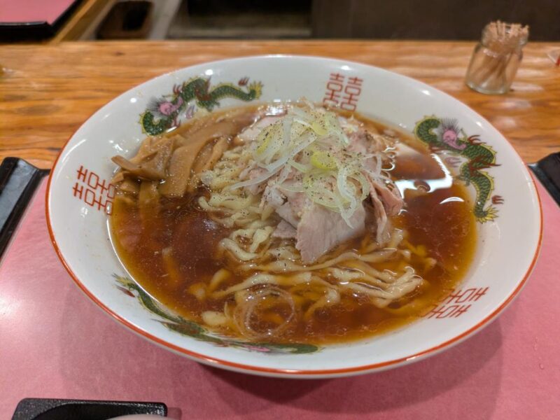 ひと口飲むと、出汁の旨味がしっかり感じらます。刻み玉ねぎも使った八王子ラーメンではなく、純粋な醤油ラーメンですり